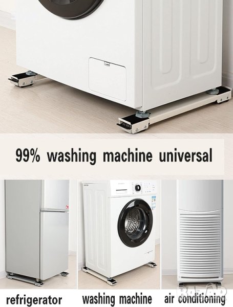 е подходящ за перални, хладилници, сушилни, шкафове или друго обзавеждане.