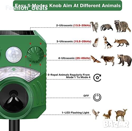 Ултразвуков уред за прогонване на животни: Ефективно прогонва котки, мишки и други нежелани животни.