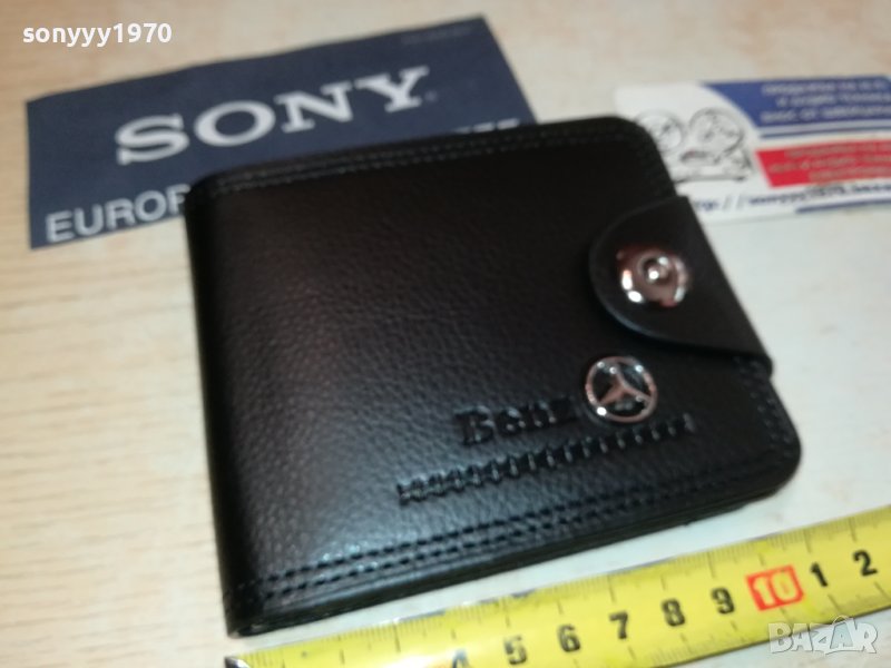 Мъжко портмоне в черен цвят с отделения за банкноти, монети, карти и други. Изработено от еко кожа, декорирано с емблема на Mercedes. Размери: 10х11 см.КРАЙНИ ЦЕНИ.ПАЗАРЛЪЦИ НЕ! пращаме със спиди или еконт с преглед и тест след превод на капаро за куриерската услуга поради зачестили некоректни потребители-поръчки само тук в саита! по телефона и със смс не! краини цени! бартери не правиме! ПАРИ НЕ ВРЪЩАМЕ! всеки ден нови неща-още 2-3 наши обяви тук