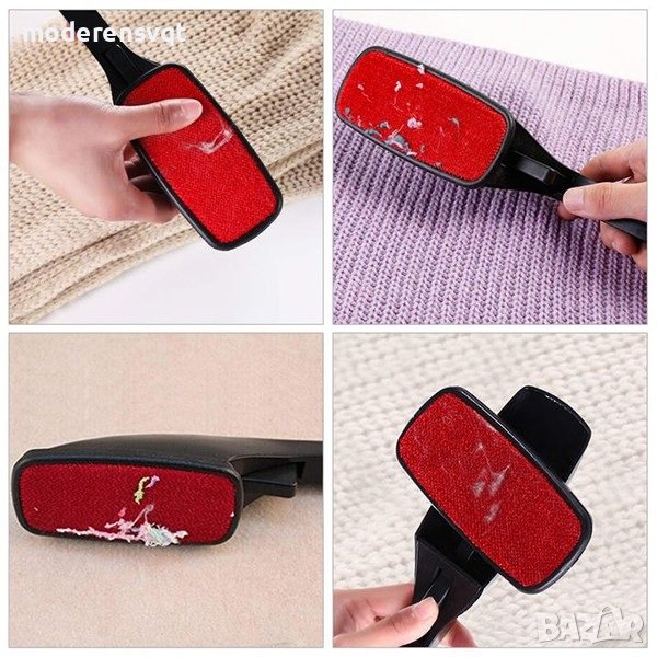 Четка за събиране на косми от кучета , котки и други повърхности. Пластмасова с бутон за завъртане на главата .Четката е за многократна употреба. Използваната иновативна материя за събиране на косми позволява многократното ползване.