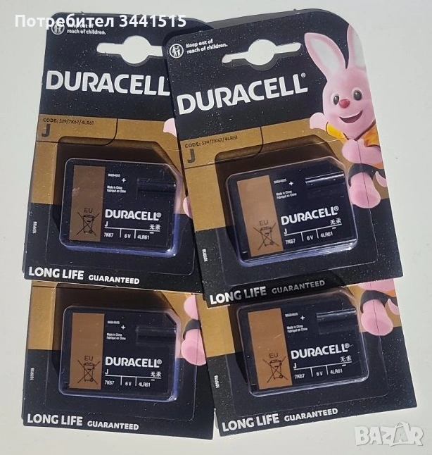 4 броя х Duracell J, 4LR61, 7K67 6V алкална батерия → Обява 41832401