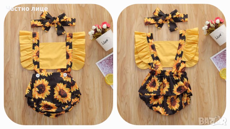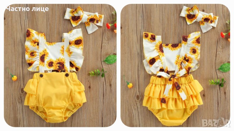 7. Боди на слънчогледи с лента за коса - размери 6-9м и 9-12м. Цена 19лв