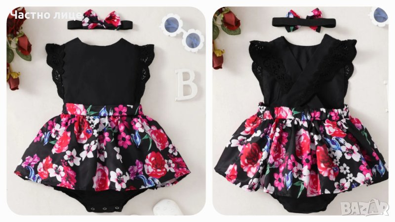 8. Боди-рокля на цветя с лента за коса - размери 6-9м и 9-12м. Цена 19лв