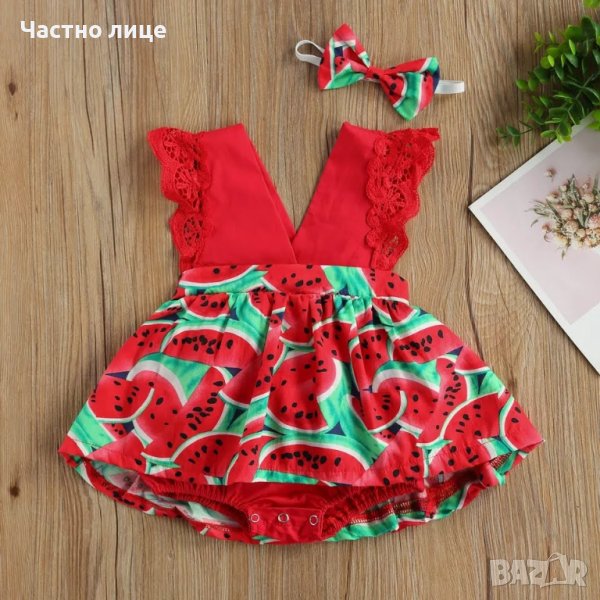 9. Боди-рокля на дини с лента за коса - размери 0-3м, 3-6м, 6-9м, 9-12м, 12-18м и 18-24м. Цена 19лв