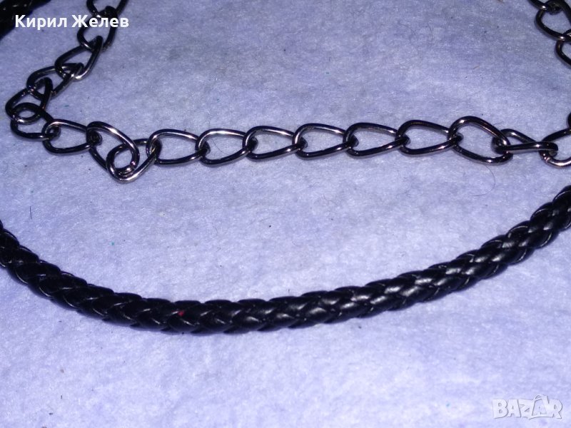 D-2 ФЕШЪН РОКАДЖИЙСКИ СТИЛ ВЕРИЖКА за КОЛАН МЕТАЛ и ЕКО - КОЖЕНА ОПЛЕТКА 35382