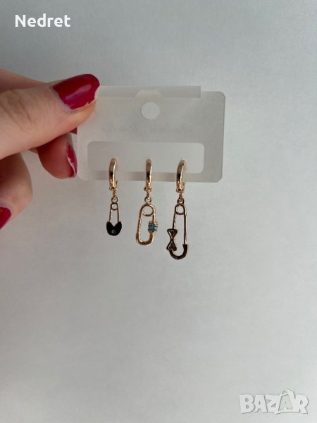 Пиърсинг обеци, не са чифтни само 3. Златисти са с сини шарки. 3 различни големини.
