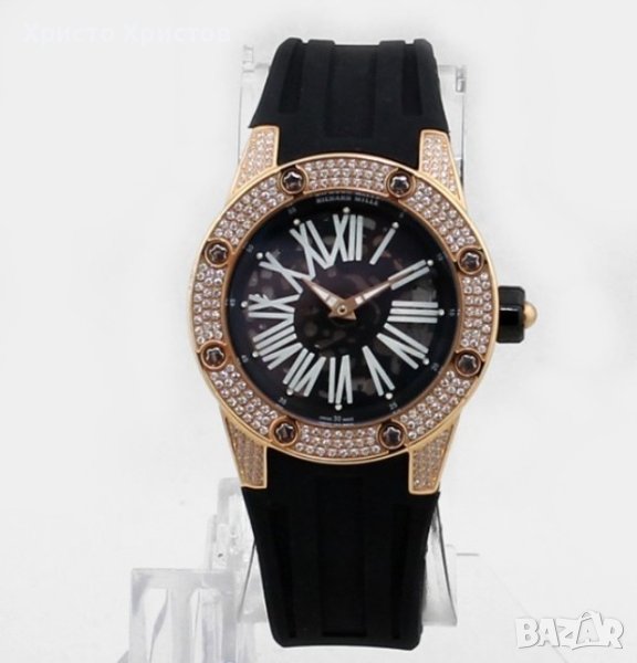 Richard Mille RM63, Skeleton, механичен, автомат, полиран стоманен корпус розово злато с камъни, циферблат тип Skeleton с фосфоресциращи римски цифри и стрелки, черна каучукова каишка с оригинално закопчаване.