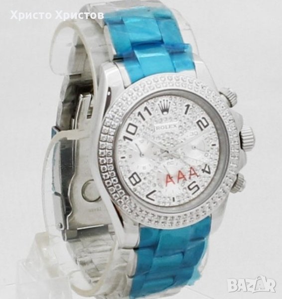 часовник Rolex Daytona, механичен, автоматик, полиран стоманен корпус L316 и верижка, ефектен циферблат с камъни и дата/месец и 24 часов хронограф.