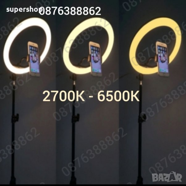 Лед Ринг Лампа с променяща се светлина и променяща се цветна температура. Лампата може да променя температурата на светлината в три позиции ТОПЛА, НЕУТРАЛНА и СТУДЕНА с вграден дифузьор(без да са нужни смяна на излишни бели или оранжеви пластмаси). Монтира се изключително лесно върху металната стойка с регулираща се височина и гъвкаво рамо на стойката, което се движи свободно.