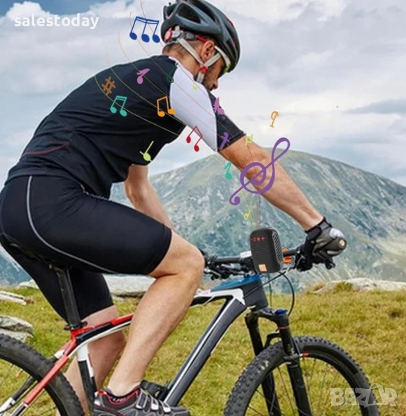 Преносима портативна Bluetooth колонка с радио слот за карта памет AUX USB и стойка за велосипед мотоциклет ел. тротинетка черна