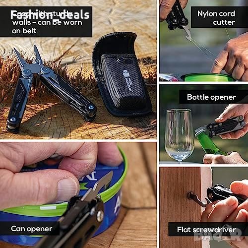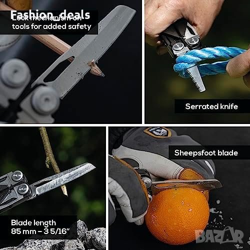Допълнителни функции: Отварачка за консерви, отварачка за бутилки, ножица, игла, нож за рязане на найлонов кабел.