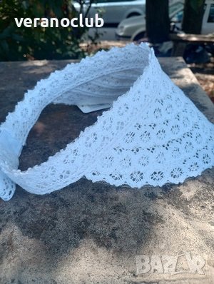 Красива бяла дамска лятна козирка от дантелена материя. Козирката е подходяща за всички, които не обичат да носят шапки. Тя предпазва лицето от вредните слънчеви лъчи. Ефектната материя на дантеления плат позволява пране, сгъване и мачкане, като това не повлиява на формата на козирката.