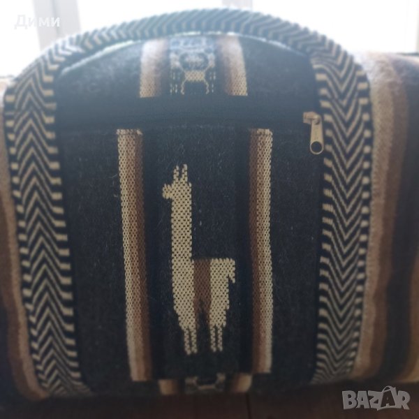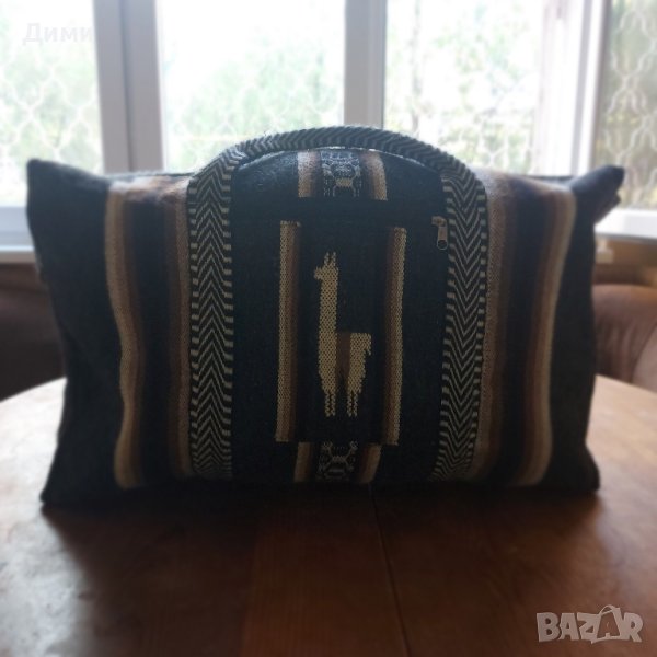 Много удобен Сак от вълна с примес на ангора.Закупен от Мароко.Падплатен с дунапрен, който е облечен с шушляков плат.Има предно джобче с цип, две къси и една дълга дръжка.Събира много багаж.Размерите са приблизителни, ширина 55см, височина 35см, дължина 25см.Без следи от употреба.