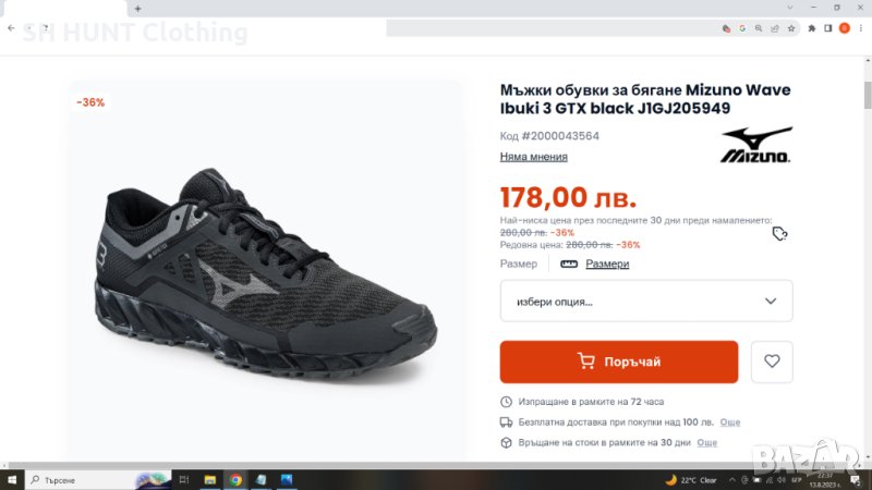 Марка: MIZUNO WAVE IBUKI 03 GORE-TEX - Маратонки водонепромокаеми SL1-66 Размер: EUR 37 / UK 4,5 - дължина на стелката 24,5 см.