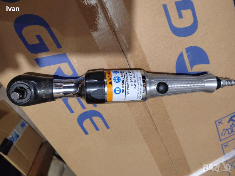 Продавам Snapon ъглов ключ за гаечни камъни от гедоре, работещ на сгъстен въздух. За състоянието на инструмент вижте снимките.