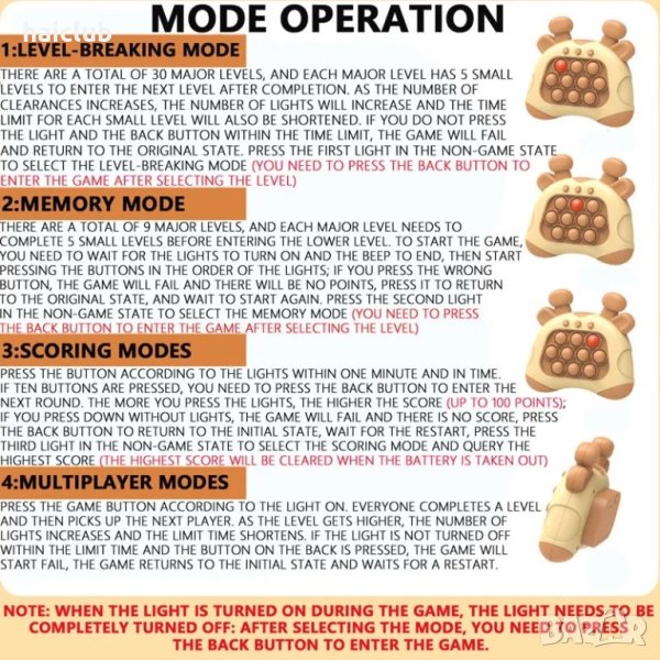 Натискаш светещите балончета.После презареждаш със стискане.Четири игри над 20 нива.Игра за скорост.Игра за памет.Игра за бързина.Мултиплеър игра.