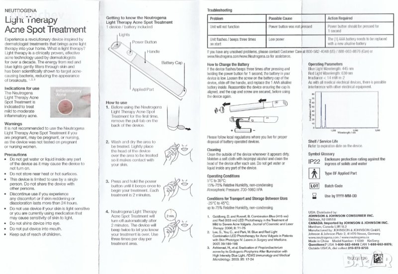С дерматологичната технология за акне в кабинета, Neutrogena Light Therapy Acne Spot Treatment използва силата на светлинната терапия за борба с акнето за насочване и бързо лечение на пъпки. Клинично доказано, че ускорява намаляването на пъпките, това лечение на петна от акне използва терапия с червена и синя светлина за бързо лечение на пъпки, без да се лющи или дразни кожата ви. Неговият патентован дизайн позволява на светлината да обгражда пъпката за ефективно, целенасочено лечение – синята светлина убива бактериите, причиняващи акне, докато червената светлина успокоява възпалението. Лесният за използване, преносим дизайн е идеален за третиране на петна от акне в движение и не оставя бъркотия или остатъци. Neutrogena Light Therapy Acne Spot Treatment е разрешено от FDA, без UV лъчи и без химикали за лечение на акне.