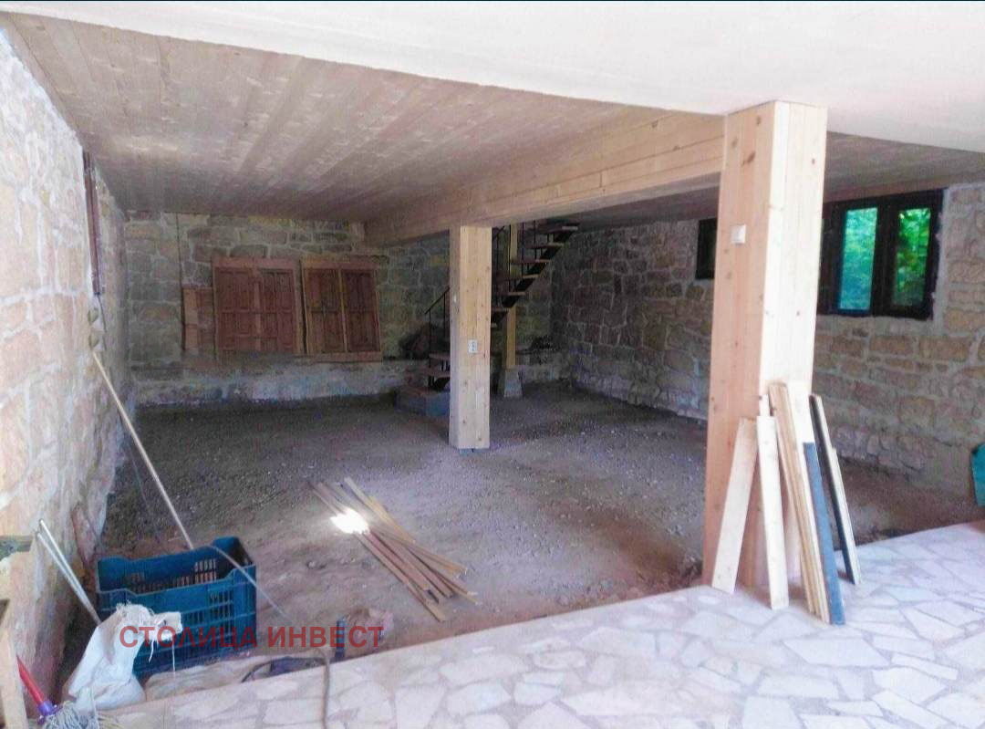 ет. 1- едно голямо помещение, предназначено за хол, трапезария и кухня, баня и тоалетна и голяма веранда.