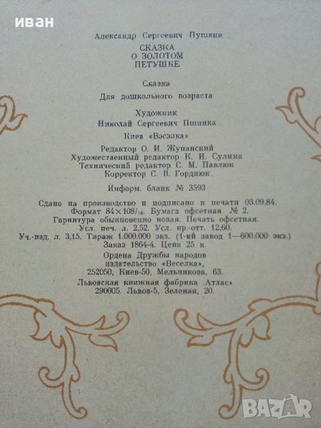 Сказка о золотом петушке - А.С.Пушкин - 1985г. → Обява 41854146