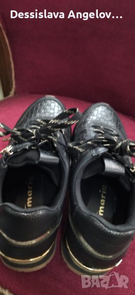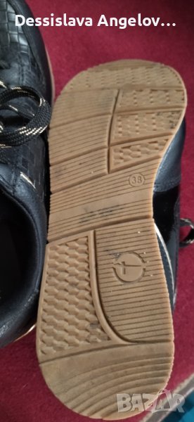 Черни дамски сникърси Tamaris 38-ми номер от висококачествена изкуствена кожа и текстил, с връзки и цип, като нови. Размери: дебелина на подметката 2,5 см; цялостна височина на обувката 11см.