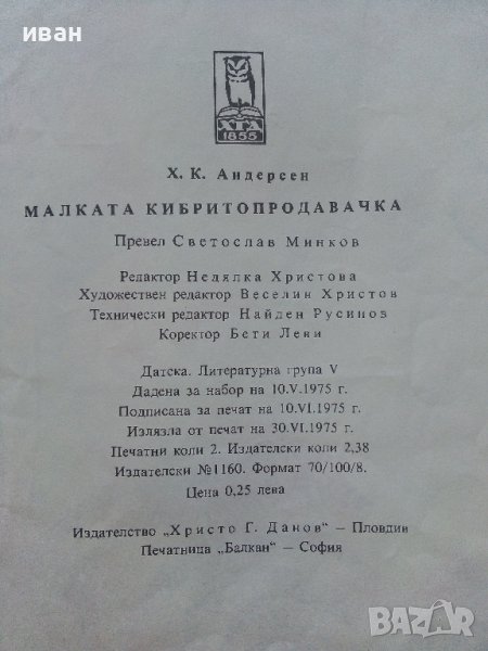 Малката кибритопродавачка - Ханс Андерсен - 1975г. → Обява 41854792