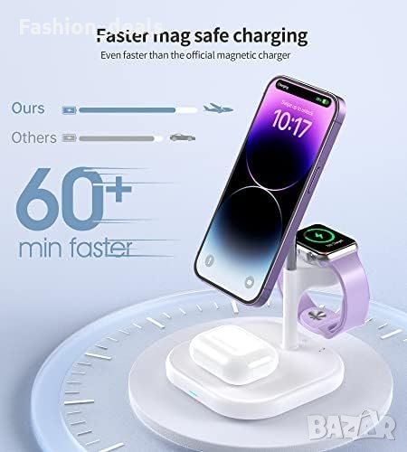 Ново Безжично магнитно зарядна устройство станция 15W телефон слушалки часовник Айфон → Обява 41854931