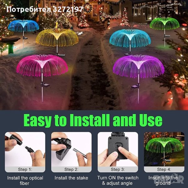ВКЛЮЧВАНЕ/ИЗКЛЮЧВАНЕ и лесно инсталиране: Тези слънчеви градински декоративни светлини са много лесни за работа, просто включете превключвателя и те автоматично ще получават слънчева светлина през деня, преобразувайки светлинната енергия в електричество. Работи автоматично през нощта и се изключва на зазоряване. Всяка лампа има независим соларен панел, така че не е необходима кабелна връзка. Отнема само няколко секунди за инсталиране и е много лесен за използване.