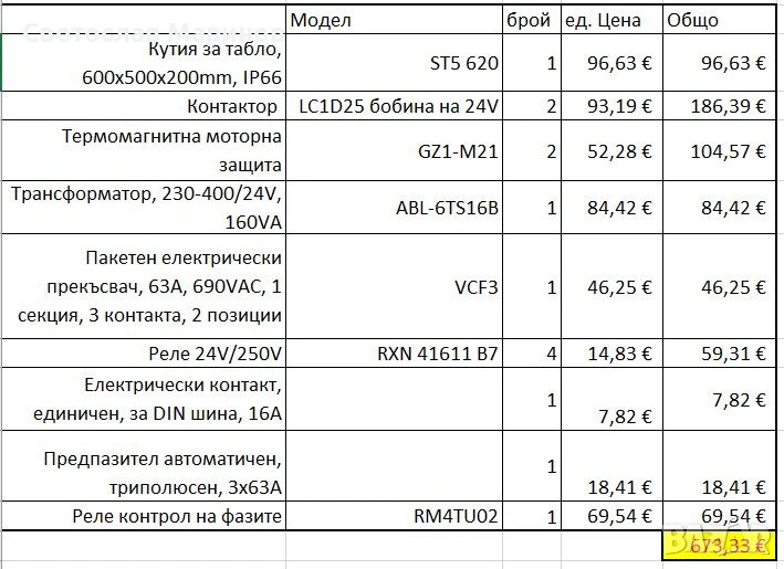 свързване, както и списък на основните материали вложени в проекта с цени от преди 4 години. В момента при справка в интернет