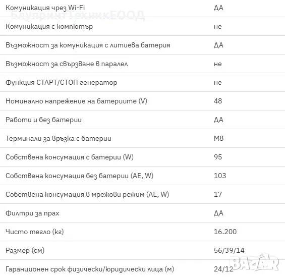 Обявените цени са крайни и включват ДДС и фактура. Не предлагаме продажба без ДДС! Гаранцията важи само при стриктно изпълнение на "предписанието за инсталация" окомплектовано с инвертора, както и на гаранционните условия!