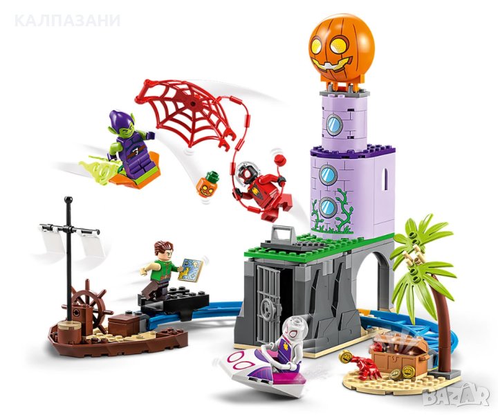 От подземната пещера до тиквата на върха на фара, комплектът LEGO® Marvel Отборът на Спайди във фара на Зеления гоблин (10790) е изпълнен с екшън, създаден специално за деца над 4 години. Съкровище, капани и битки със супергерои Комплектът включва 4 минифигури – Майлс Моралес, Духчо, Сънчо и Зеления гоблин – плюс пират корабокрушенец за конструиране, железопътни релси за транспортиране на откраднатото съкровище, пещера, която служи като затвор, главната квартирата на фара на Зеления гоблин и множество аксесоари. Стена от начална тухличка дава на децата увереността да строят и да променят конфигурацията на комплекта. Простите инструкции са предоставени под формата на цветно ръководство с история в картинки, а за допълнително цифрово забавление приложението LEGO Builder разполага с интуитивни инструменти за мащабиране и завъртане, които позволяват на децата да визуализират своя модел, докато строят. Забавление за цялото семейство Комплектите 4+ са идеалният начин възрастните да споделят забавлението по време на строителството с децата независимо дали са опитни фенове на LEGO, или използват тухлички на LEGO за първи път.