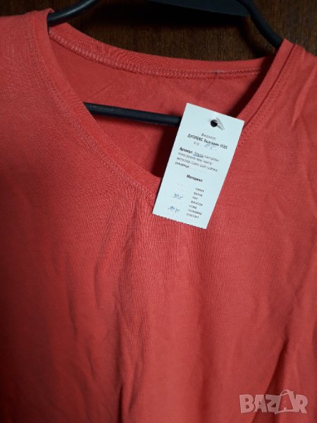 Дамска блуза дълъг ръкав, цвят оранжево цикламен, шпиц деколте, материя вискоза и елестен 10 %, размер М. Блузата е нова с етикета, в торбичка съхранявана, само не е изгладена. Отговарям на съобщения тук, изпращам с куриер с отстъпка, преглед и тест, или лично предаване в София.