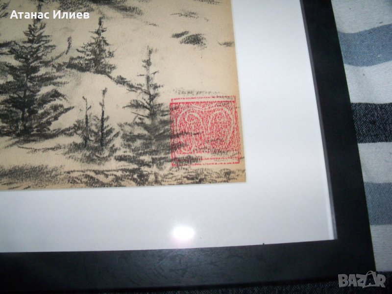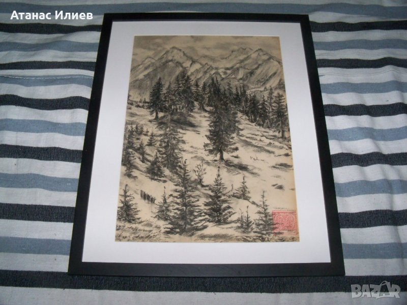 Красив пейзаж, графика на художничката Десислава Илиева. Графиката е изпълнена с въглен и подпечатана с личният печат на художничката. Рамкирана е с рамка с паспарту, размери с рамката 43х53 см. Картини на художничката са притежаниие на колекционери и ценители на изкуството от страната и чужбина.