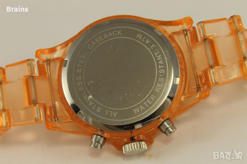 Интересен дамски кварцов хронограф изработен от пластмаса. Красив черен карбонов циферблат. Механизъм - Японски кварцов MIYOTA OS 20 Chronograph. Работи отлично, хронографа работи, сменя дата нормално. Много лек и удобен.
