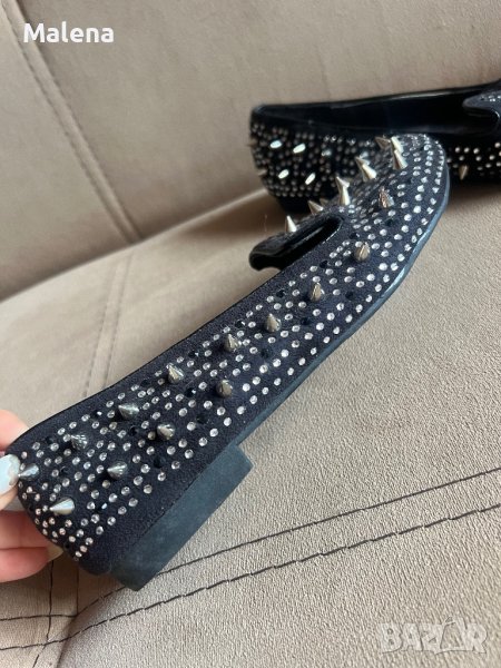 Дамски обувки с шипове, отдолу са велурени , отгоре са покрити с малки камъчета и шипове . Обувани броени пъти , като нови !