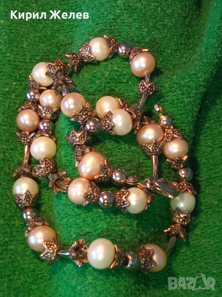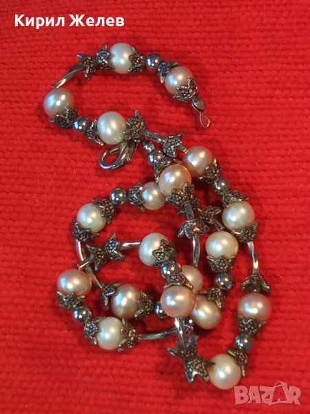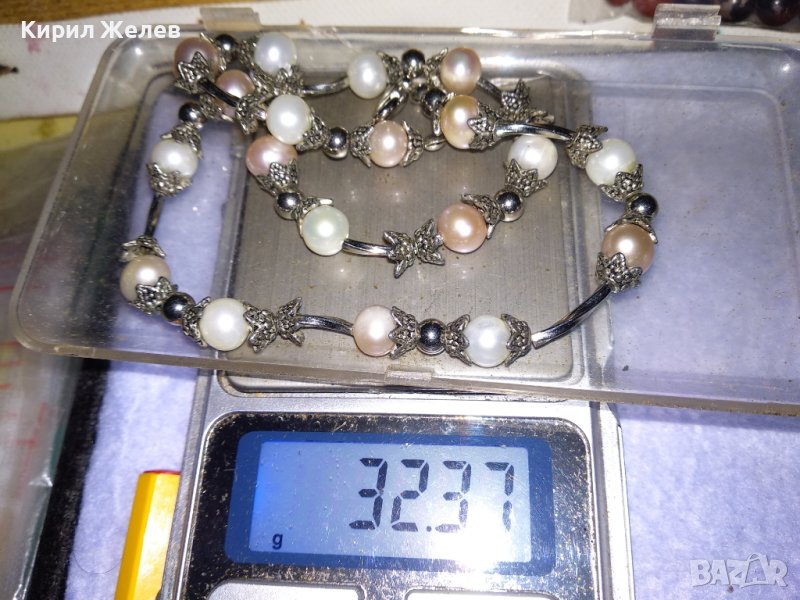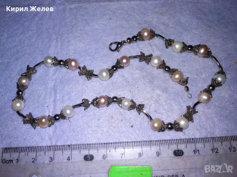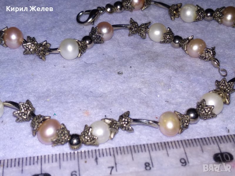 СРЕБРИСТО КРАСИВО НЕЖНО ПЕРЛЕНО ВИНТИДЖ АРТ КОЛИЕ БЕЛИ и РОЗОВИ НАТУРАЛНИ ПЕРЛИ 38886