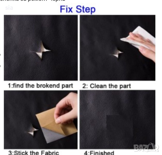 Ремонтната кожа е със самозалепващата се основа и просто я залепвате върху повредените зони, които трябва да бъдат ремонтирани. Не е необходимо да купувате специално лепило за предстоящият ремонт, просто извадете ремонтната кожа и започвайте.