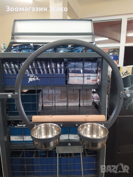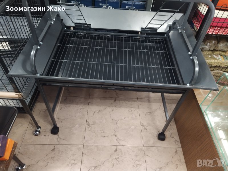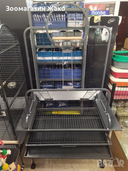 Големи стойки за игра и обучение на Вашите любимци,с купички,тарелка,скара,стълбичка,колелца, семеуловители,за да не падат семена извън нея(играчката не е включена в цената), специално прахово покритие, нетоксично за птиците.