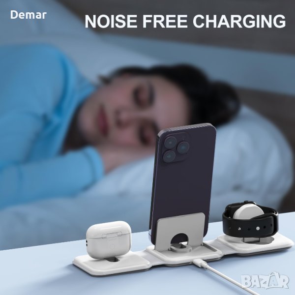 Изпитайте удобството на безжичното зарядно устройство за часовник 3 в 1. Тази станция за зареждане опростява живота ви, като зарежда вашия телефон, iWatch и AirPods едновременно в безпрепятствена настройка. С вграден интелигентен шунт чип, той осигурява безопасно и бързо зареждане чрез функции като контрол на температурата, защита от пренапрежение, защита от късо съединение и защита от свръхток. Лекият и сгъваем дизайн, изработен от мек силиконов материал, позволява лесно пренасяне, което го прави идеален за пътуване. Универсално съвместим, той поддържа AirPods Pro 3/2/1, всички модели Apple Watch и широка гама от модели iPhone. Освен това, той е съвместим с устройства Samsung Galaxy като S21, S20, S10, серия Note и др. Прегърнете по-добро и по-безопасно изживяване при зареждане с това универсално решение.