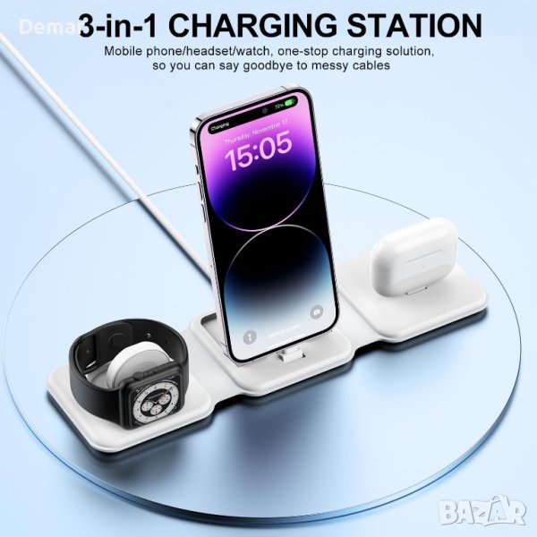 3-в-1 сгъваемо безжично зарядно Air Pods, iWatch, iPhone, Apple