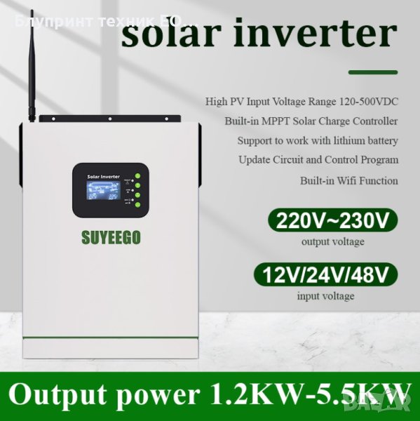 Suyeego 12V 1200W UPS/Хибриден соларен MPPT инвертор със WI-FI