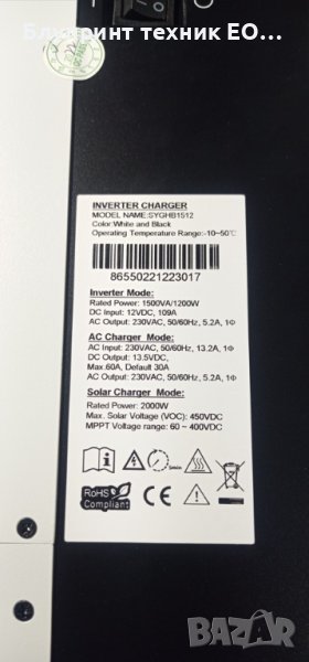 Предлагаме много модели инвертори с пълна синусоида, хибридни инвертори, микроинвертори с ограничител, зарядни устройства, MPPT соларни контролери, UPS устройства с пълна синусоида, соларни панели, акумулаторни батерии, кабели, защити и всичко необходимо за вашата система, както и гаранционен и извън гаранционен сервиз. При интерес можете да разгледате останалите ни обяви. Разполагаме с физически магазин в София, от където можете да вземете лично каквото ви е необходимо. Можем и да ви го изпратим с наложен платеж по куриер. Тестваме всяка техника преди това, или във ваше присъствие. Ако ще я инсталирате сами и имате нужда от съвети и насоки, не се притеснявайте да ни попитате. При необходимост, разчитайте и на безплатна първоначална настройка, ако устройството го позволява.