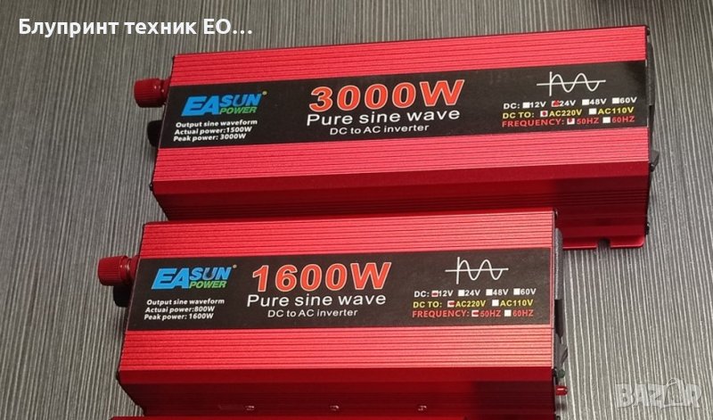 РАЗПРОДАЖБА! 24V Инвертори EAsun 800/1600W пълна синусоида