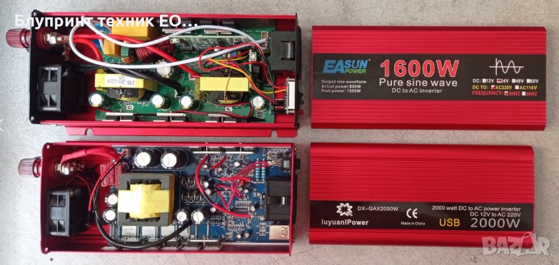 Клиентите често бъркат този инвертор с друг подобен, червен и евтин със модифицирана синусоида, поради което направихме сравнителна снимка на двата, за да се уверите чене са еднакви.