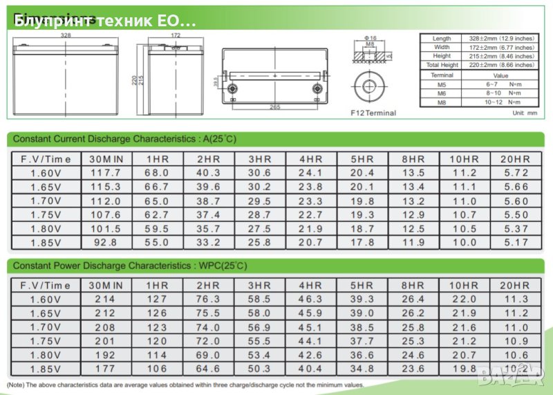 Капацитет: 110AH (при 20ч разряд до 10.5V)