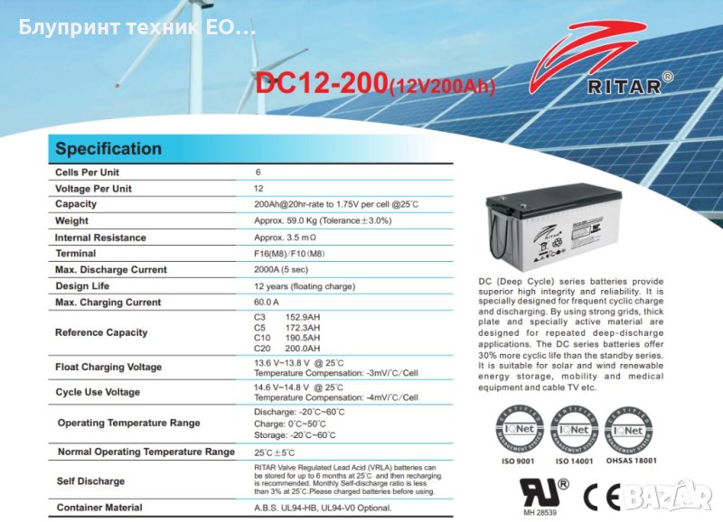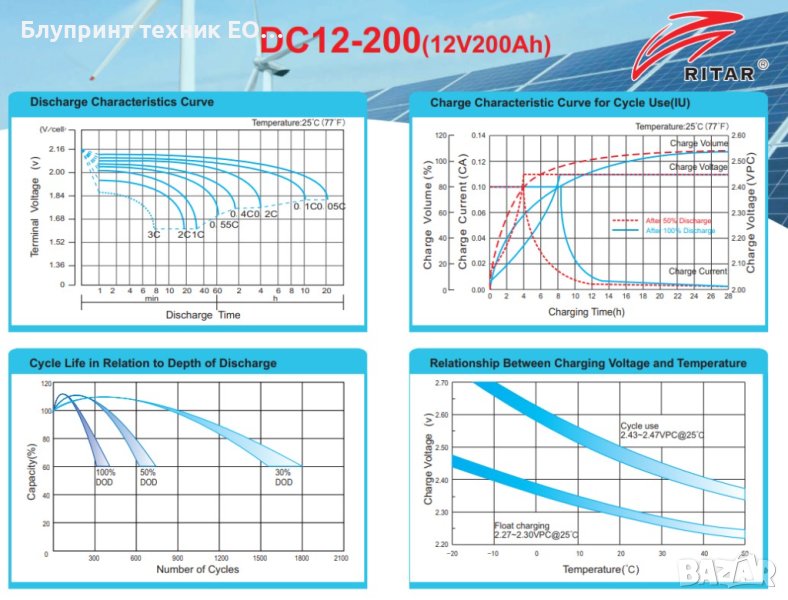 Капацитет: 200AH (при 20ч разряд до 10.5V)