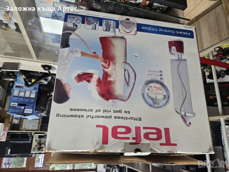 Уредът за гладене с пара Tefal Instant Control IS8380 бързо и ефективно изглажда гънки и премахва миризмите от дрехите.