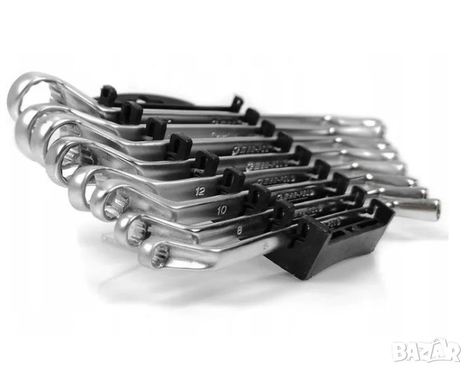 Комплекта ключва следните размери: 6мм x7мм, 8мм x9мм, 10мм x 11мм, 12мм x 13мм, 14мм x 15мм, 16мм x 17мм, 18мм x 19мм, 20мм x 22мм, 21мм x 23мм, 24мм x 27мм