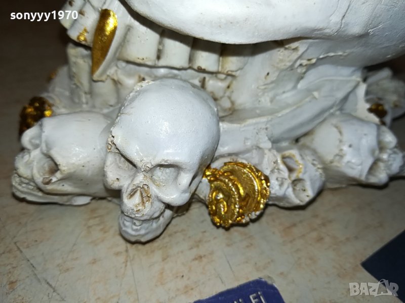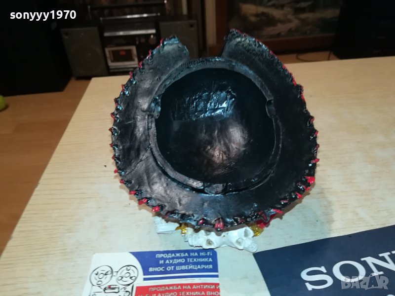 Декоративен пепелник във формата на череп.Пепелникът е изработен от полирезин.Размер: 14х15 см.КРАЙНИ ЦЕНИ.ПАЗАРЛЪЦИ НЕ! пращаме със спиди или еконт с преглед и тест след превод на капаро за куриерската услуга поради зачестили некоректни потребители-поръчки само тук в саита! по телефона и със смс не! краини цени! бартери не правиме! ПАРИ НЕ ВРЪЩАМЕ! всеки ден нови неща-още 2-3 наши обяви тук