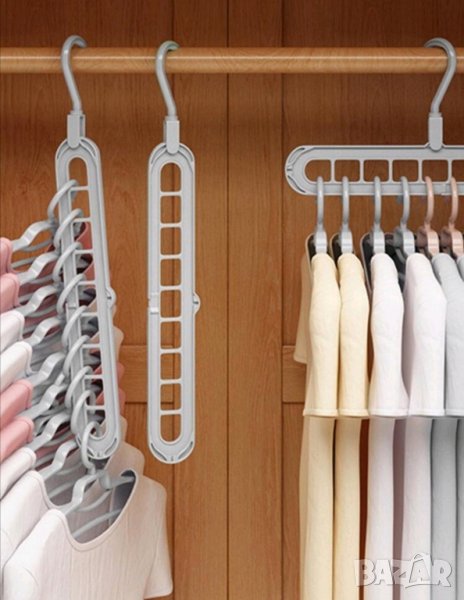 Мултифункционлана закачалка за дрехи, която може да се постави хоризонтално и вертикално.