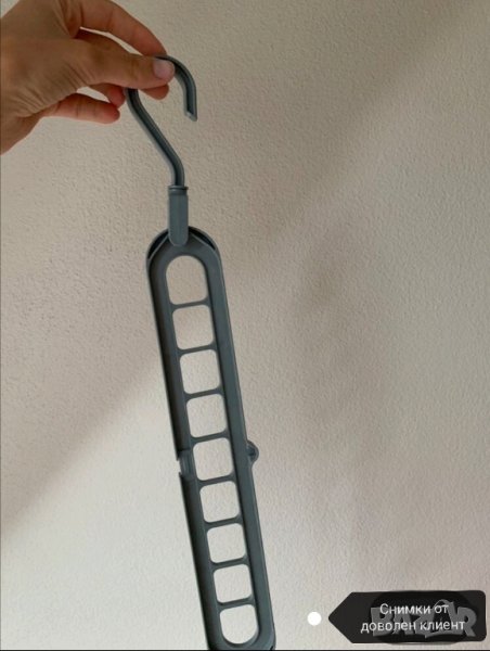 -Закачалката изпълнява функция на органайзер за други закачалки в гардероба, благодарение на деветте отвора в основата си.